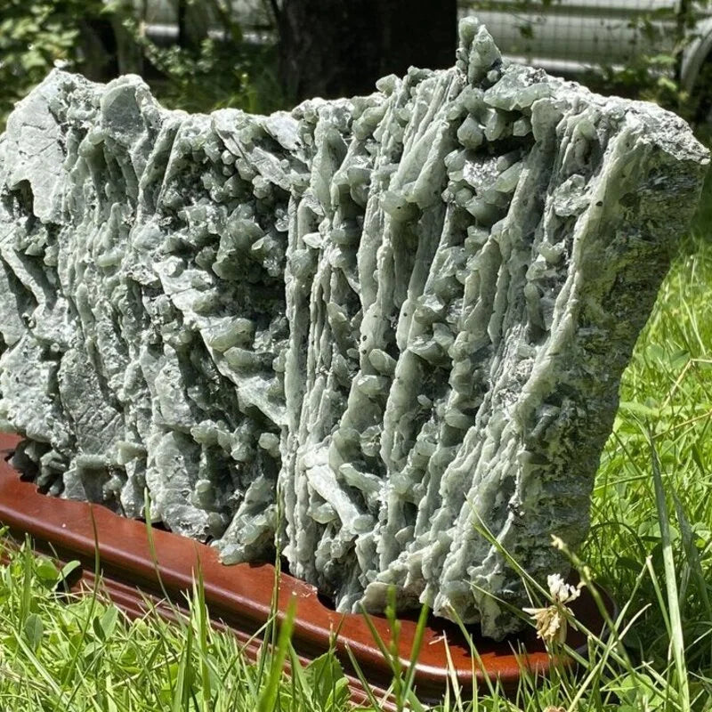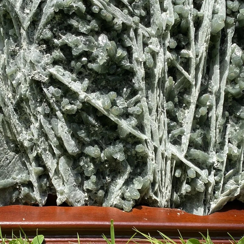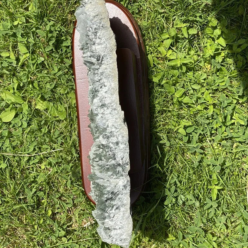 Amas de Quartz Chlorite avec le Support en Bois (Pièce Rare)