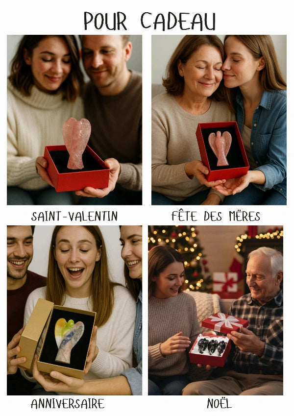 - Énergie unique de chaque pierre : quartz rose pour l’amour, améthyste pour la sagesse, tourmaline noire pour la protection… chaque ange porte un message différent.
