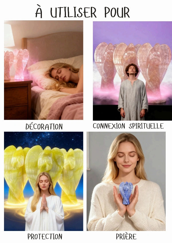 - Canal d’énergie divine : chaque ange sculpté dans une pierre naturelle devient un gardien spirituel qui diffuse les vibrations sacrées de son minéral.