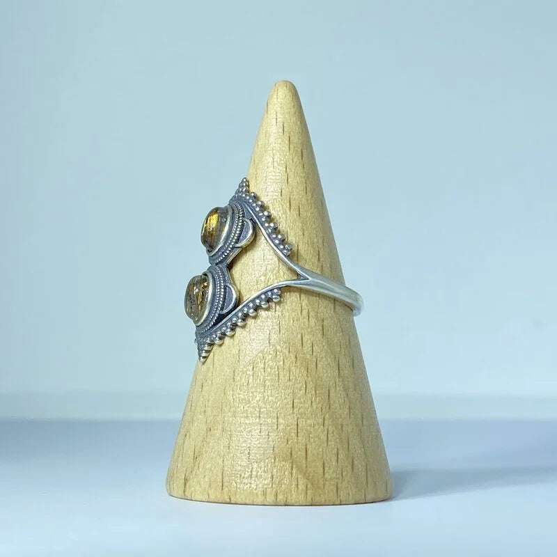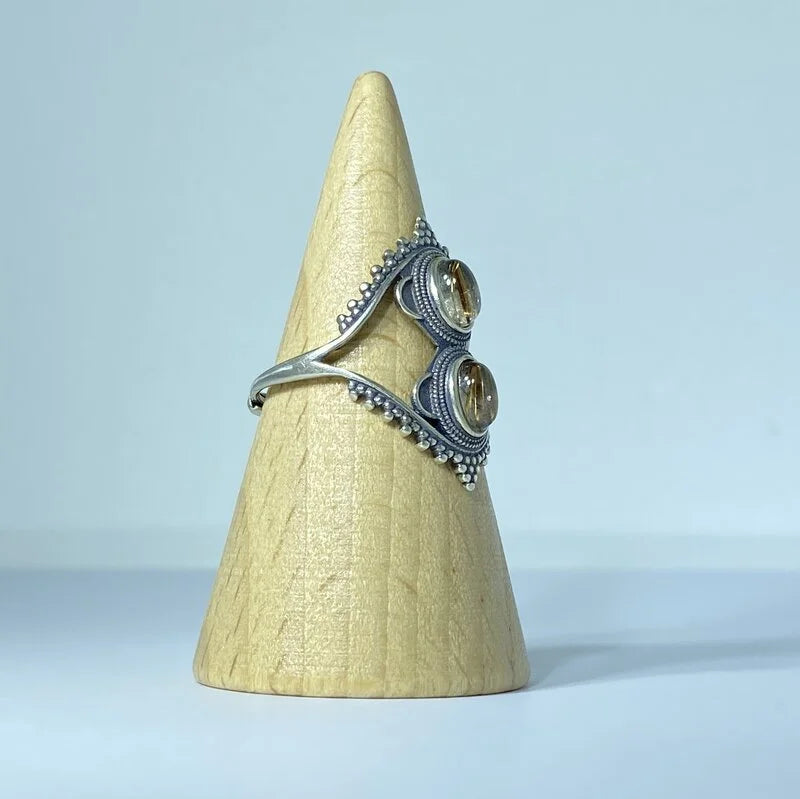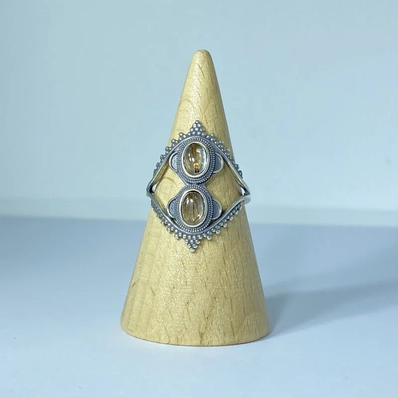 Superbe bague ! Le quartz rutile a de super reflets dorés, et le montage en argent est élégant et discret.