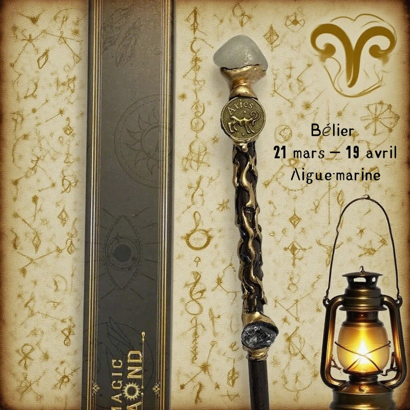 La baguette du Bélier, ornée de l’aigue-marine, reflète l’élan, le courage et la clarté d’esprit de ce signe de feu. Cette pierre favorise la communication et la confiance en soi.