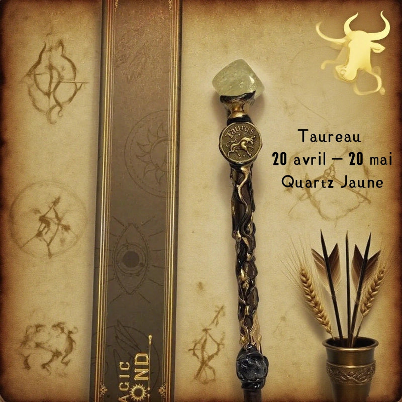 La baguette du Taureau, sertie de quartz jaune, symbolise la stabilité, la prospérité et la force tranquille. Elle apporte chaleur et vitalité au quotidien.