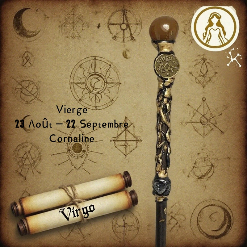 La baguette de la Vierge, embellie par la cornaline, reflète la rigueur, l’énergie et la créativité constructive. Elle stimule la vitalité et l’ancrage.