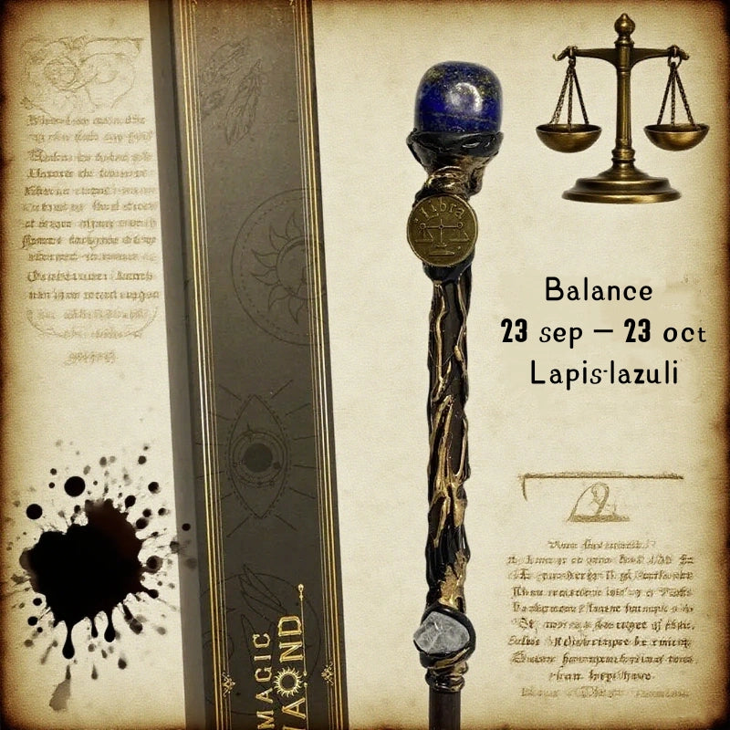 La baguette de la Balance, ornée du lapis-lazuli, symbolise l’harmonie, la sagesse et la beauté intérieure. Elle favorise l’équilibre et l’expression de la vérité.