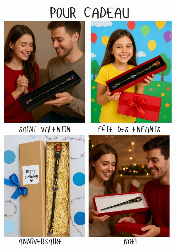 La pierre scintille avec une lumière intérieure, et la baguette elle-même semble capable de révéler des secrets cachés, je l'adore!