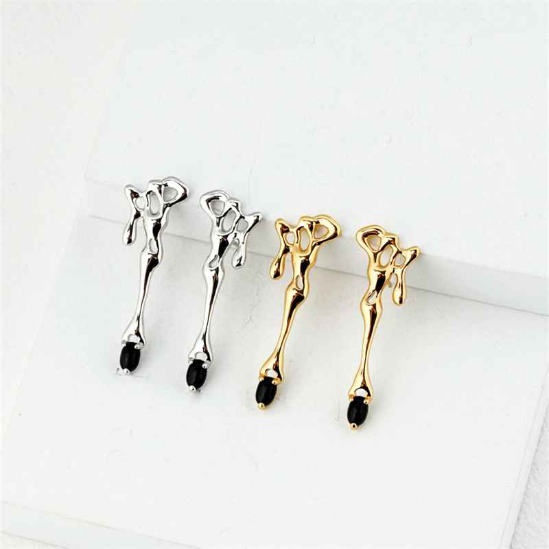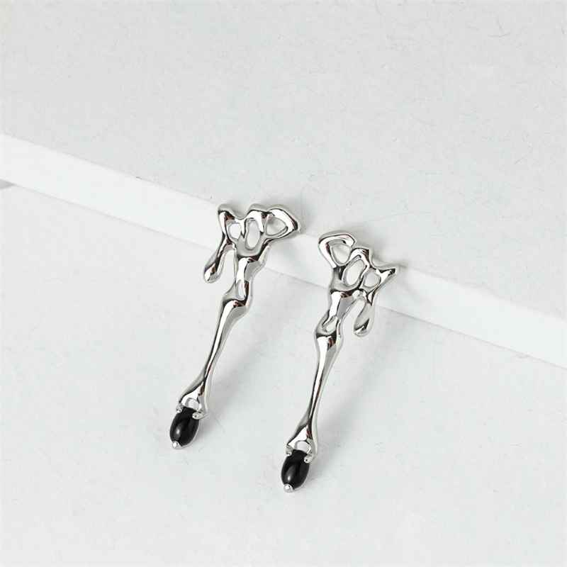 Boucle D'oreille Agate Noir Argent S925 Plaqué Or
