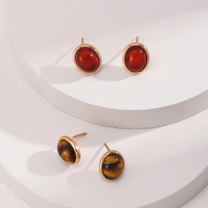 Boucle D'oreille Œil de Tigre Argent S925 Plaqué Or
