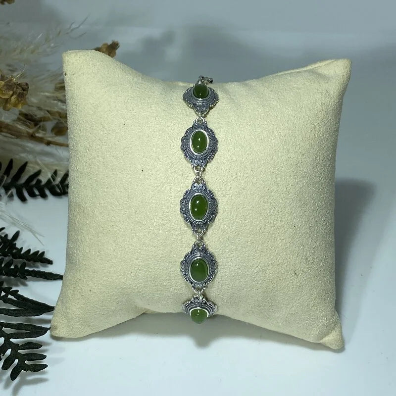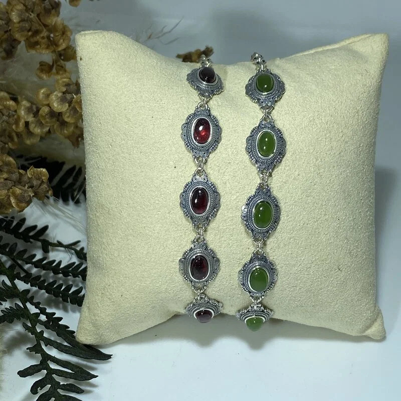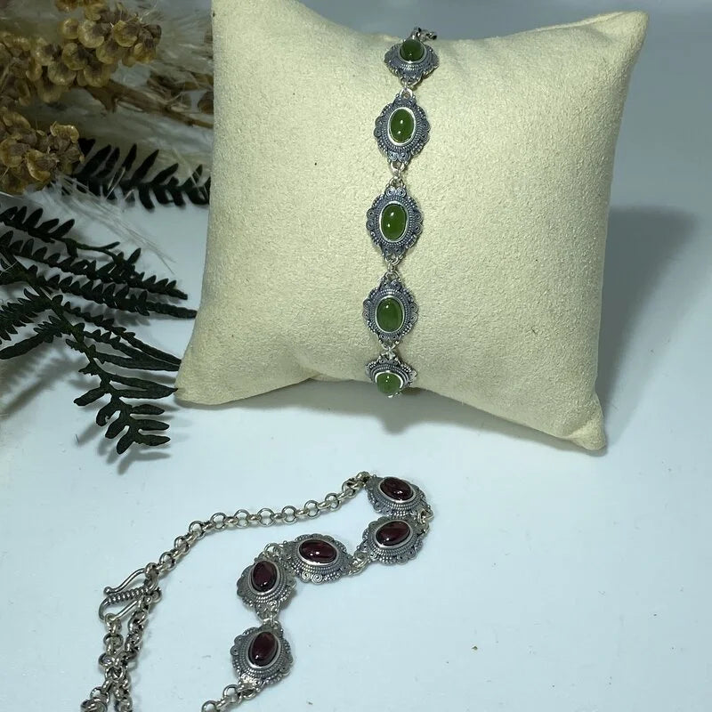 Bracelet en Grenat et Jade Argent S925