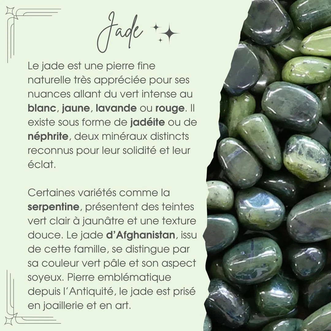 Le jade jaune est une pierre d’optimisme, de clarté mentale et d'abondance. Il favorise la concentration, attire la prospérité et aide à équilibrer les émotions.
