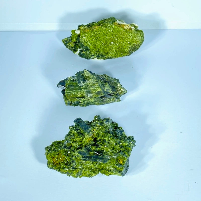 Découvrez l'éclat envoûtant de l'Épidote Brute Cristallisée. Ses teintes vibrantes de vert, mêlées parfois à des nuances de jaune ou de brun, reflètent la richesse de la nature et l'énergie vitale de la Terre. Chaque cristal de cette pierre fascinante est une création unique et authentique de la planète.