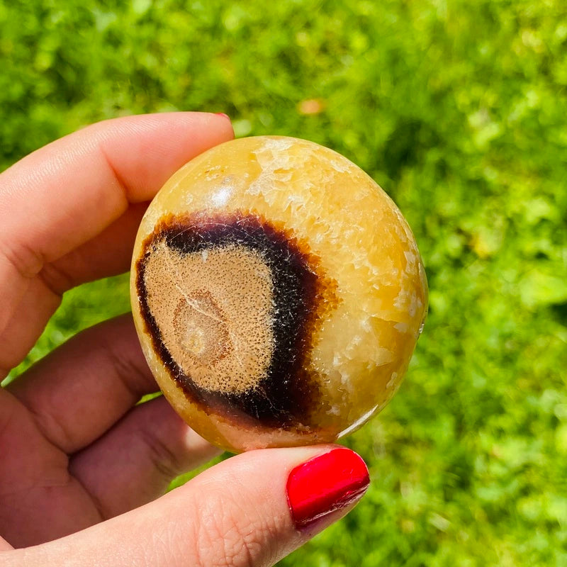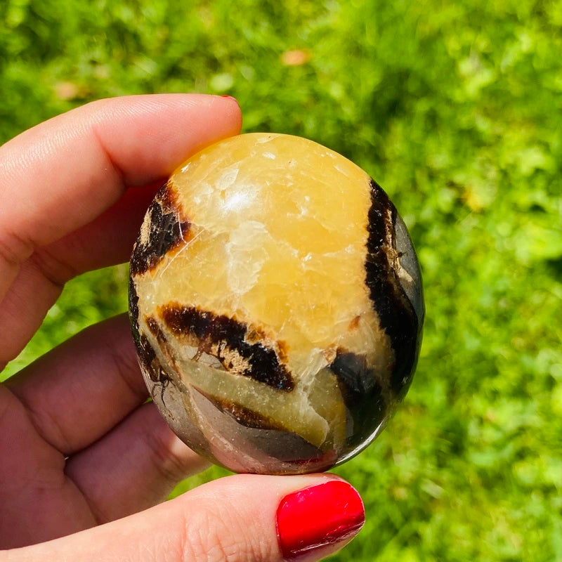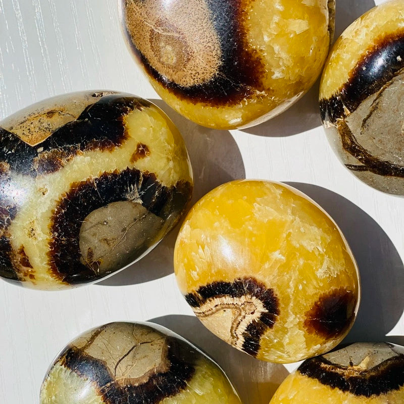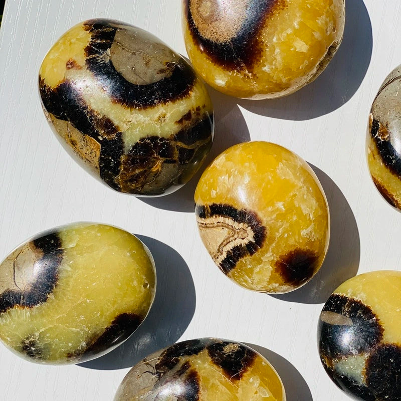 - Lumière Solaire : Exposez la pierre de septaria à la lumière directe du soleil pendant quelques heures. Cela va la revitaliser et recharger son énergie. Veillez à éviter une exposition prolongée pour éviter toute décoloration.