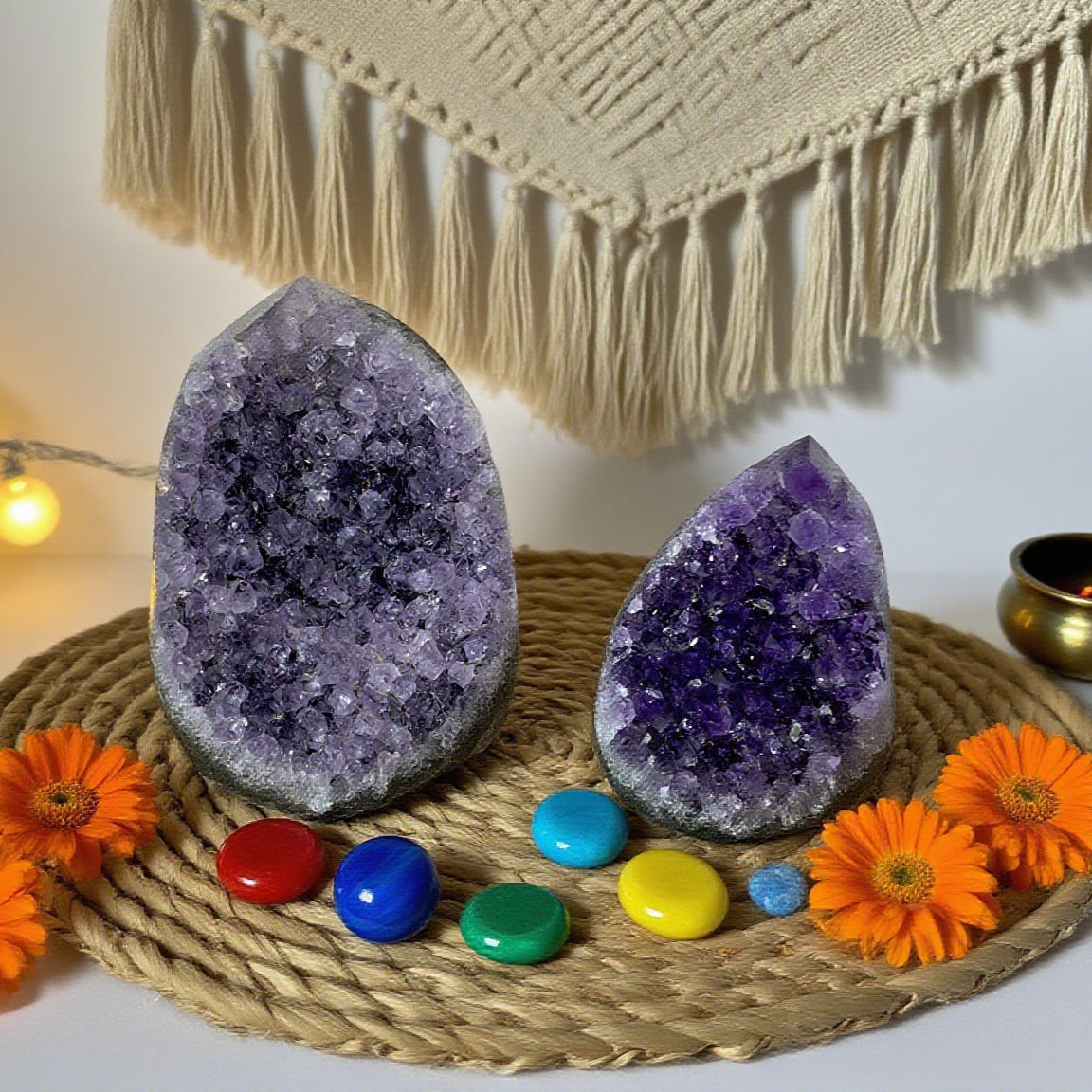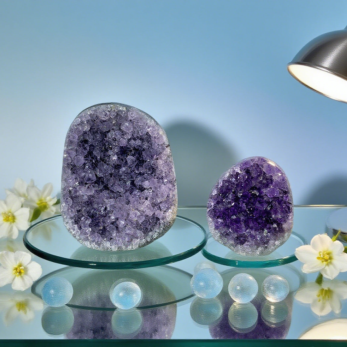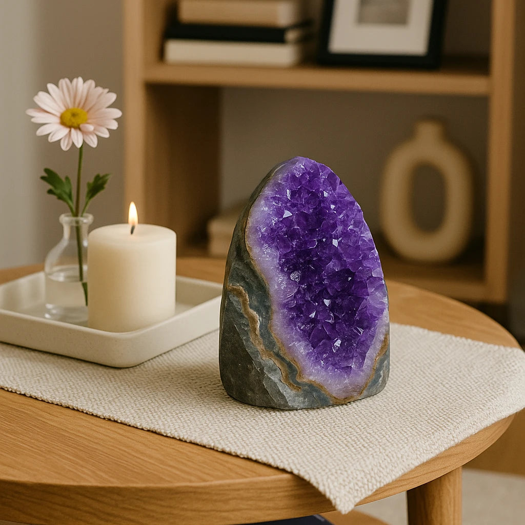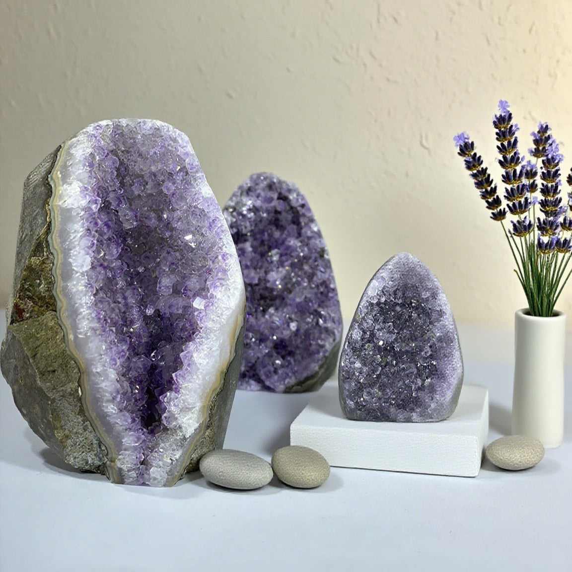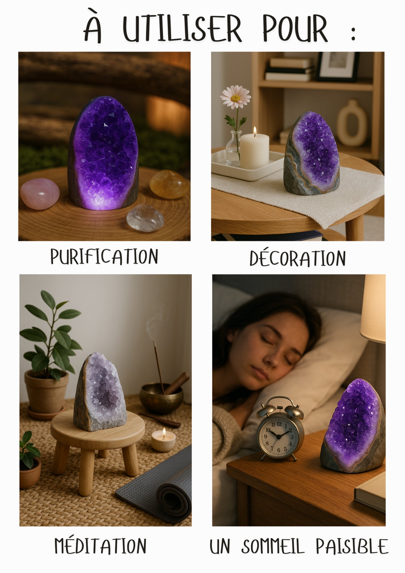 L’Améthyste est bien plus qu’un simple minéral : c’est une alliée précieuse pour retrouver calme, équilibre et clarté d’esprit. Avec ses magnifiques nuances de violet, elle apaise les tensions, éloigne le stress et transforme votre espace en un cocon de sérénité.