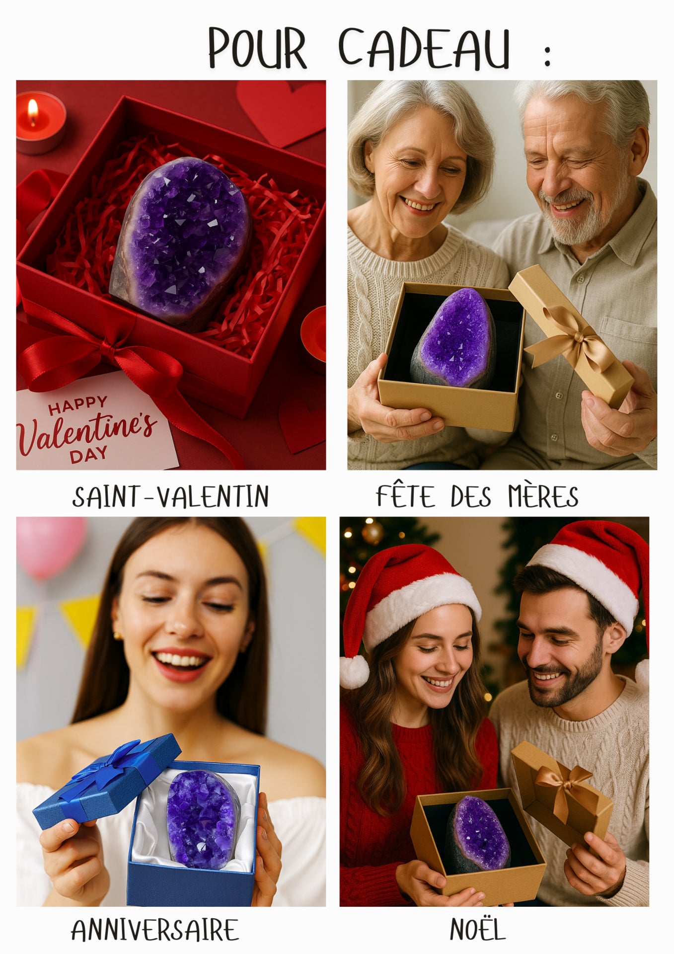 J'ai reçu ma géode d'améthyste et elle est superbe ! Les cristaux sont bien formés et la couleur est magnifique.