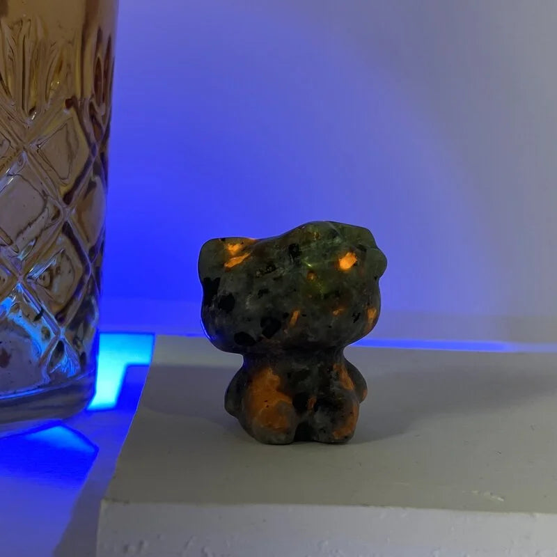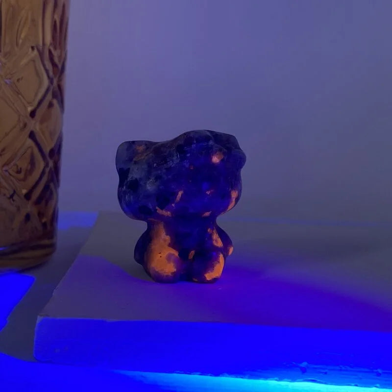 Yooperlite : Pierre volcanique contenant de la sodalite, elle brille sous les UV avec une lueur orange fluo, apportant des énergies apaisantes et mystérieuses.