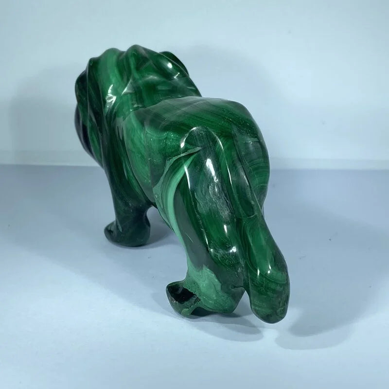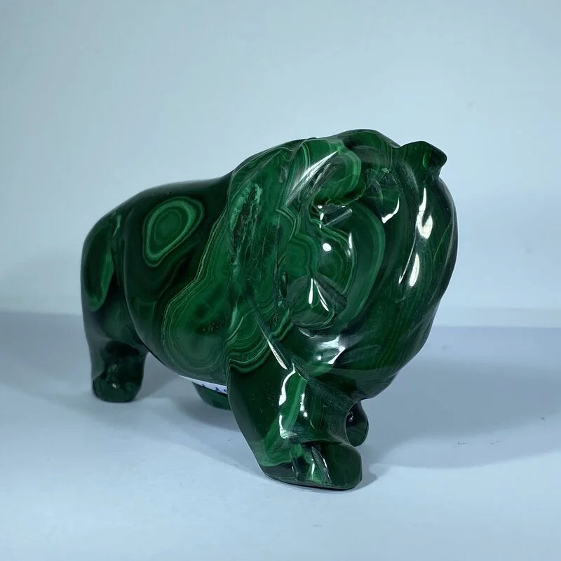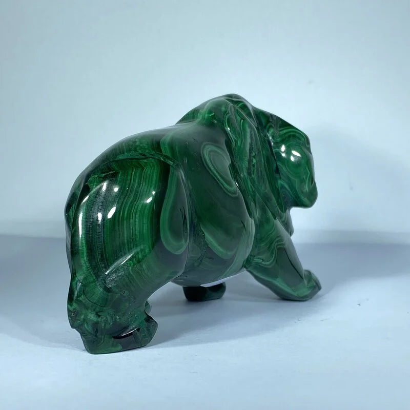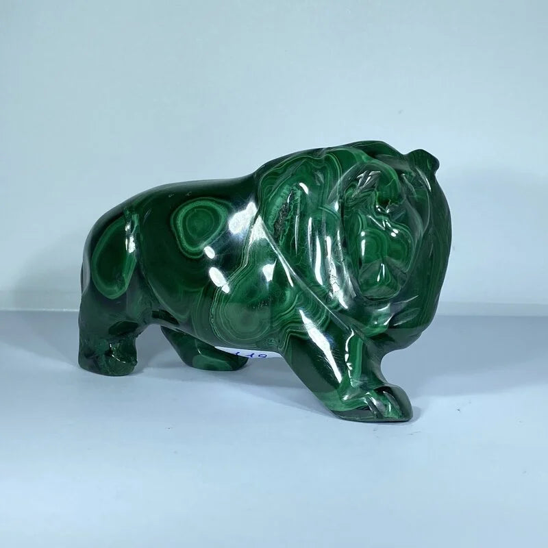 Découvrez la majesté envoûtante du Lion en Malachite, une sculpture naturelle d'une beauté exceptionnelle. Symbole de courage et de leadership, ce lion sculpté dans la malachite incarne la force tranquille et la protection intérieure. La pierre, reconnue pour ses vertus de transformation et de purification, amplifie l'énergie du roi des animaux, tout en équilibrant les émotions.