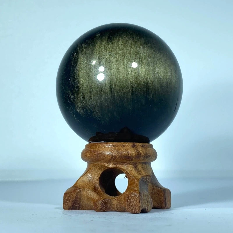 Découvrez la puissance subtile de la sphère en Obsidienne Dorée, pierre de protection et de vérité. Ses reflets dorés captivants symbolisent la lumière cachée dans l’ombre. Elle agit comme un miroir intérieur, révélant les blocages inconscients et favorisant une profonde transformation personnelle.