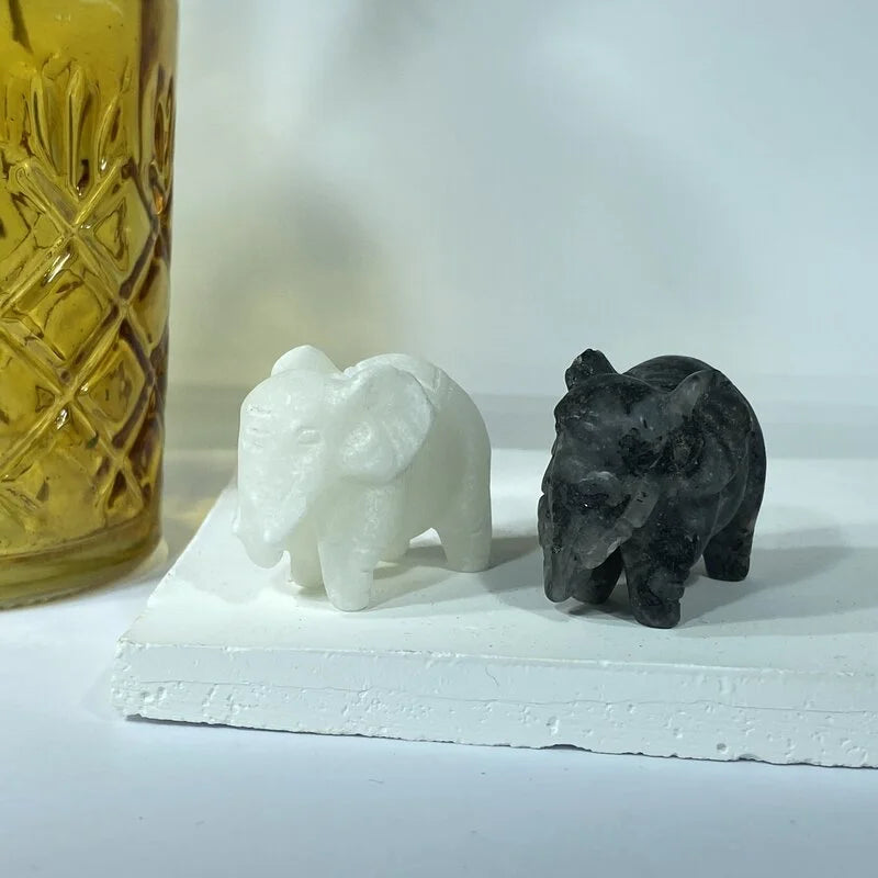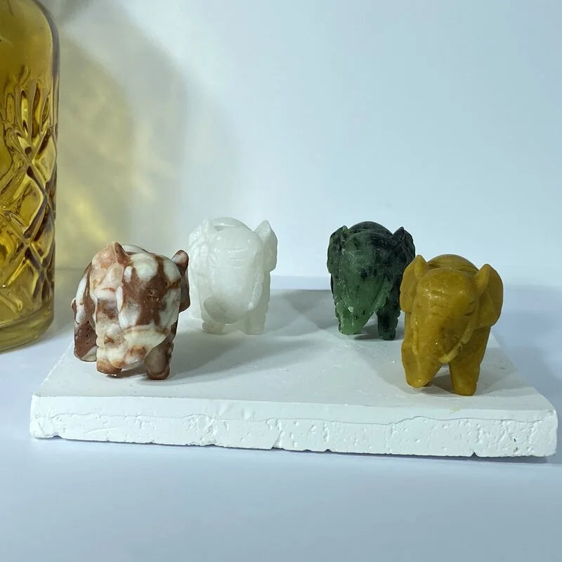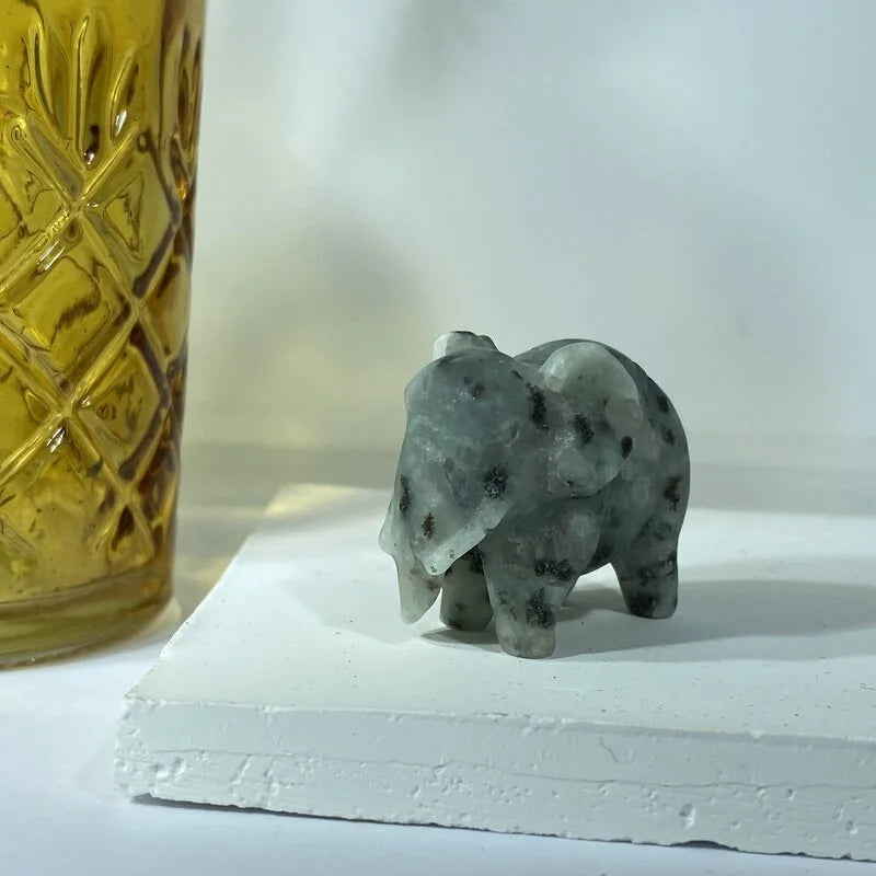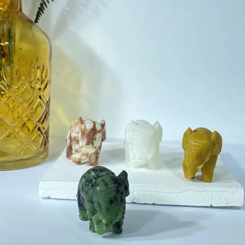 Découvrez le Petit Éléphant en Pierre Naturelle, un symbole intemporel de force, de sagesse, de protection et de chance. Sculpté avec soin dans une variété de pierres précieuses, ce petit éléphant n’est pas seulement une pièce décorative, mais aussi un puissant talisman. Chaque pierre qui le compose offre des bienfaits énergétiques uniques : le Yooperlite stimule la créativité et réduit le stress, le Quartz Rose émet des vibrations d'amour et de réconfort, et l'Unakite favorise l'équilibre émotionnel. Le Jaspe Kiwi apaise l'esprit, la Fluorite apporte clarté mentale, et la Calcite purifie l'environnement.