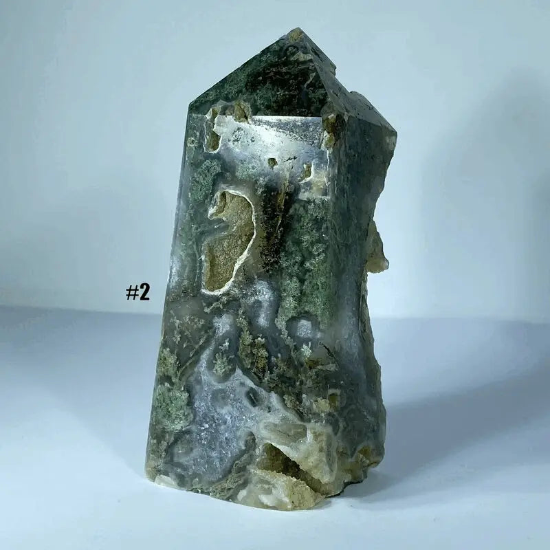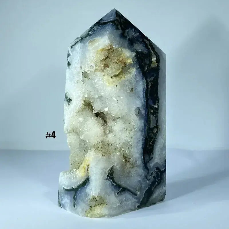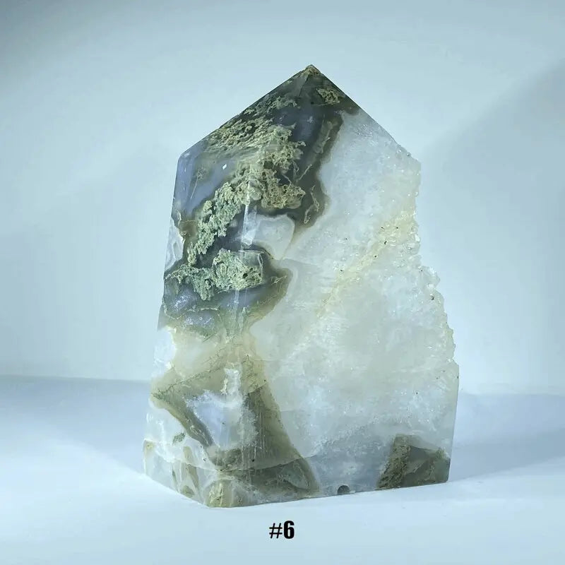 Plongez dans l’énergie pure de la nature avec cette petite pointe en Agate Mousse, sublimée par une druse scintillante. Connue pour sa connexion profonde à la Terre, l’Agate Mousse favorise l’ancrage, la croissance intérieure et la sérénité. Elle apaise l’esprit et attire la stabilité, tout en harmonisant votre environnement.