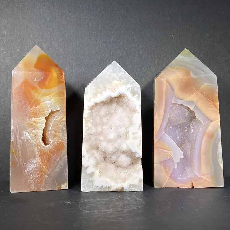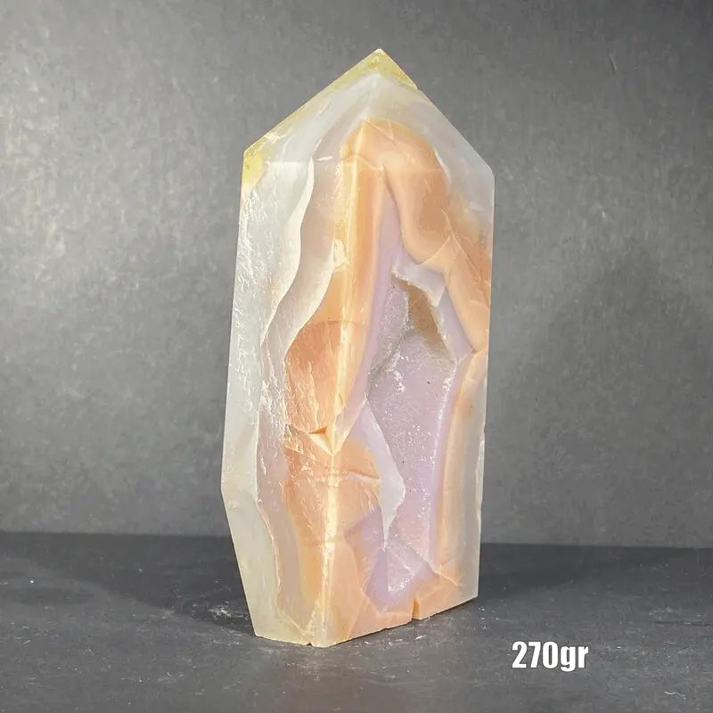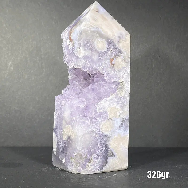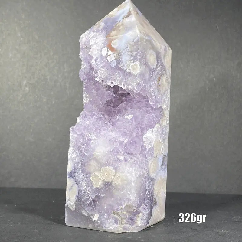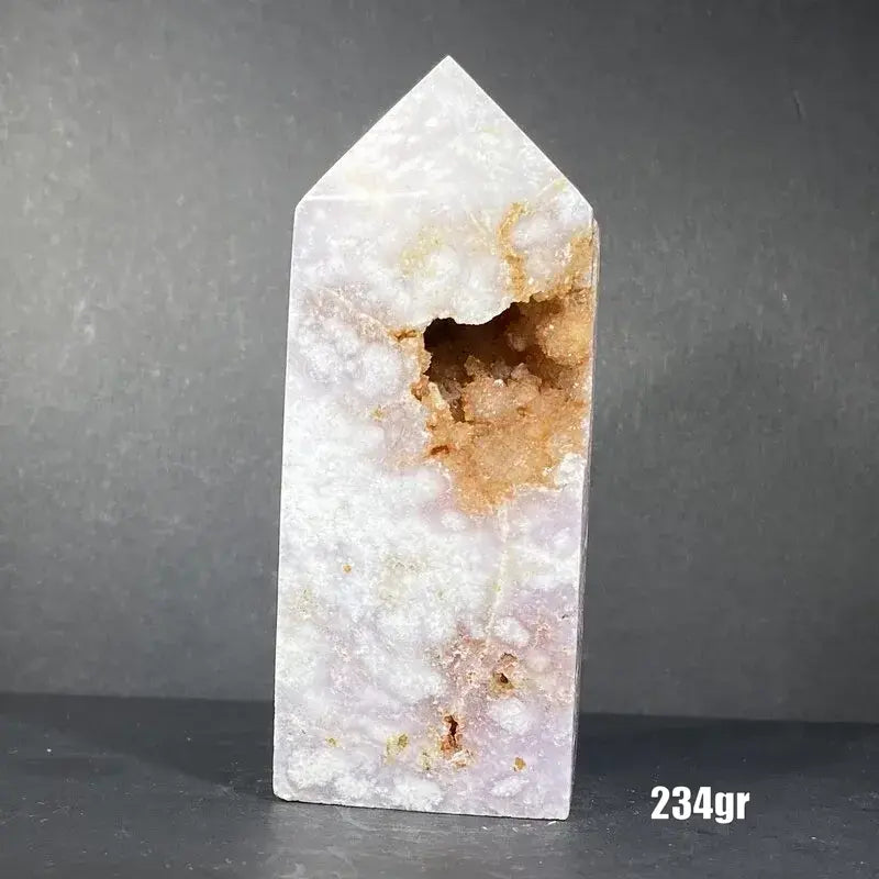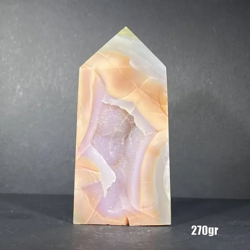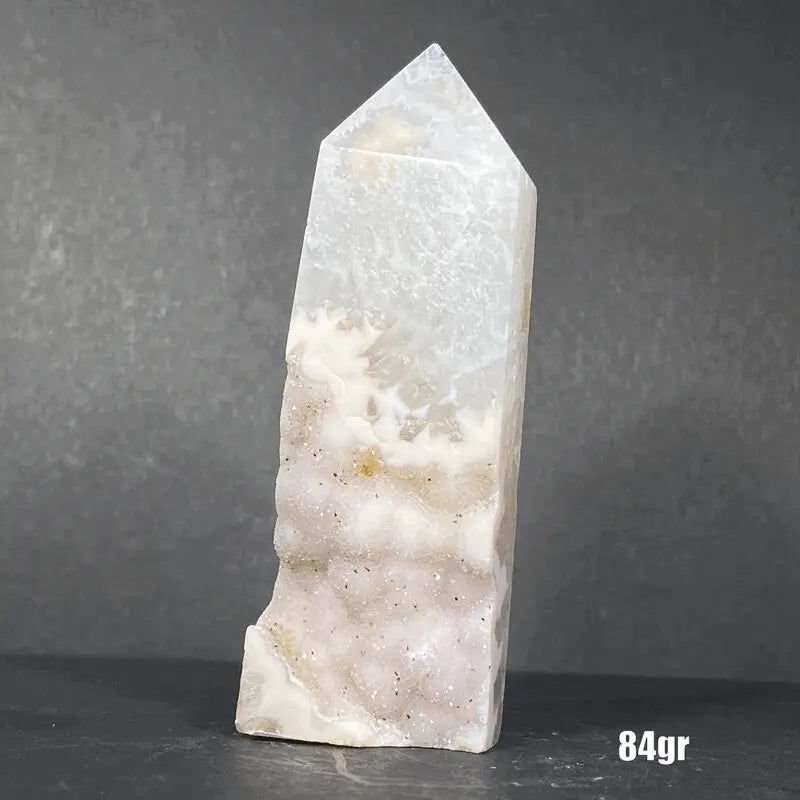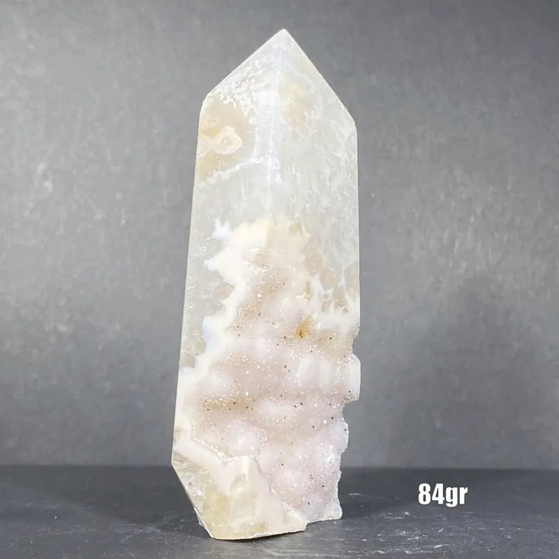 Découvrez la pointe en Agate Cerisier avec Druse, une pierre d’une rare beauté mêlant douceur florale et force intérieure. L’Agate Cerisier, avec ses motifs délicats rappelant les fleurs de cerisier, symbolise la paix, la renaissance et l’équilibre émotionnel.
