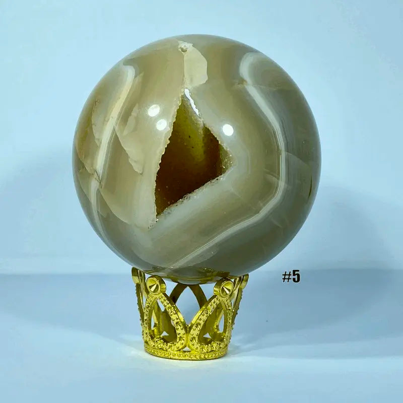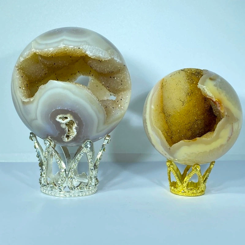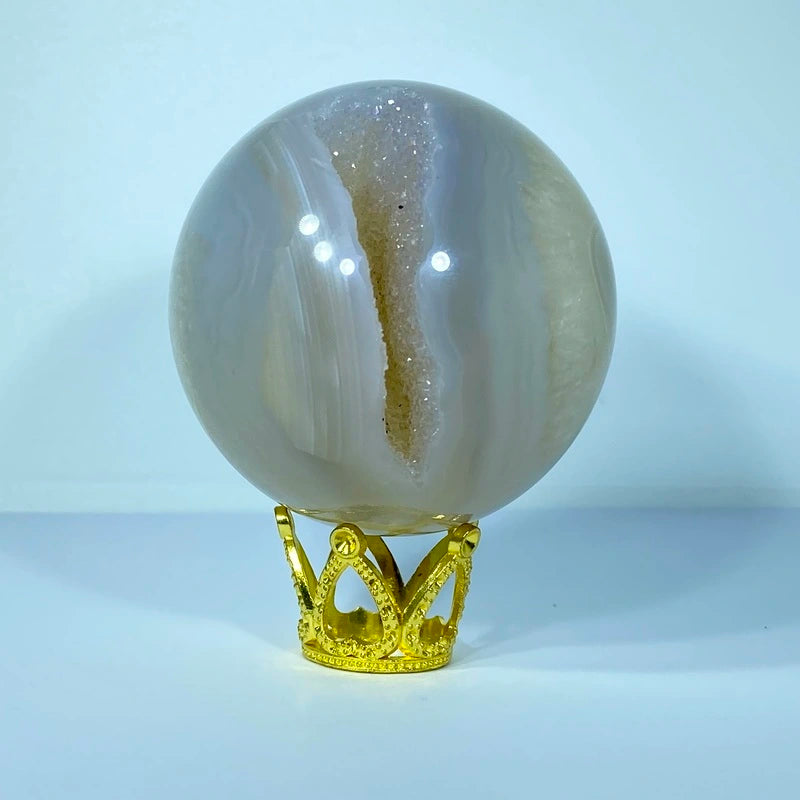 Découvrez l'univers mystique de la Sphère d'Agate. En apparence douce et polie, elle révèle en son cœur une druse scintillante, symbole d’énergie pure et de transformation intérieure.