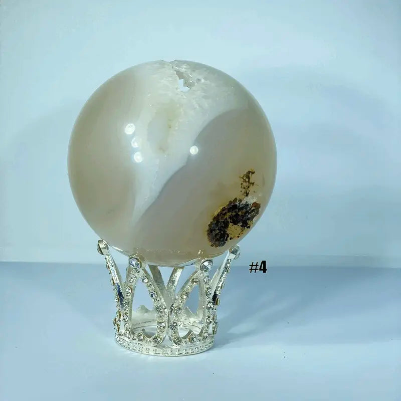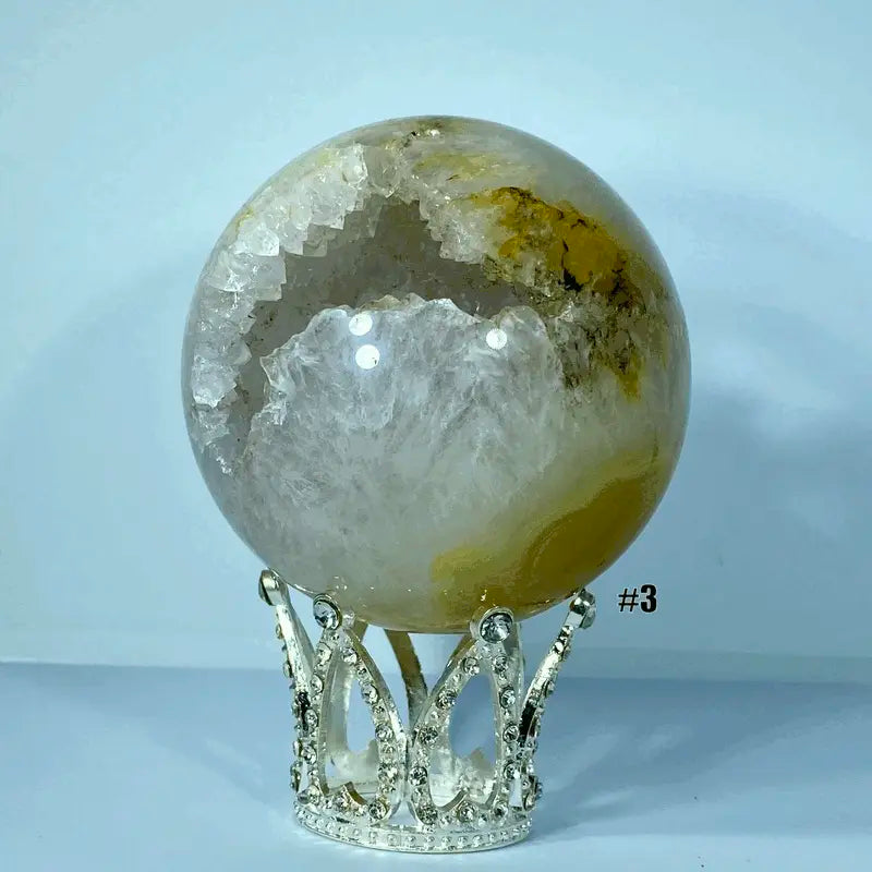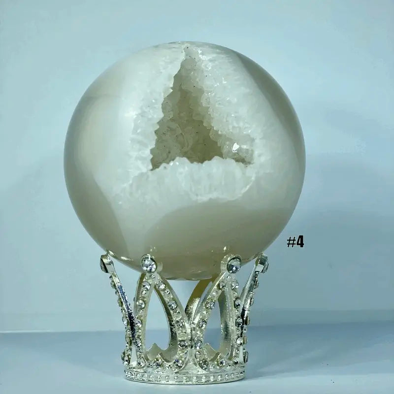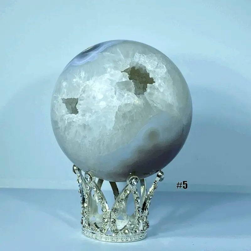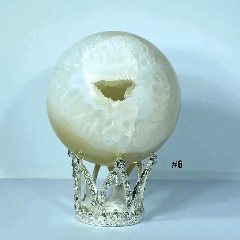 Découvrez l'univers mystique de la Sphère d'Agate. En apparence douce et polie, elle révèle en son cœur une druse scintillante, symbole d’énergie pure et de transformation intérieure.