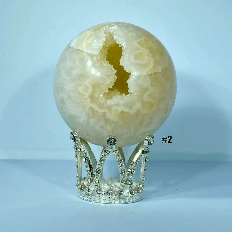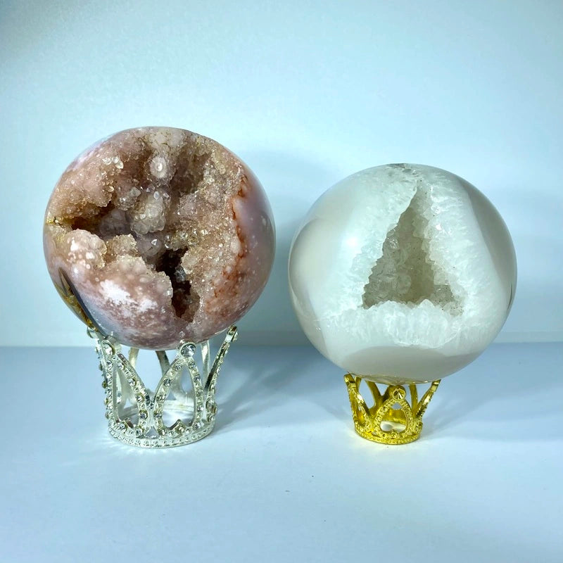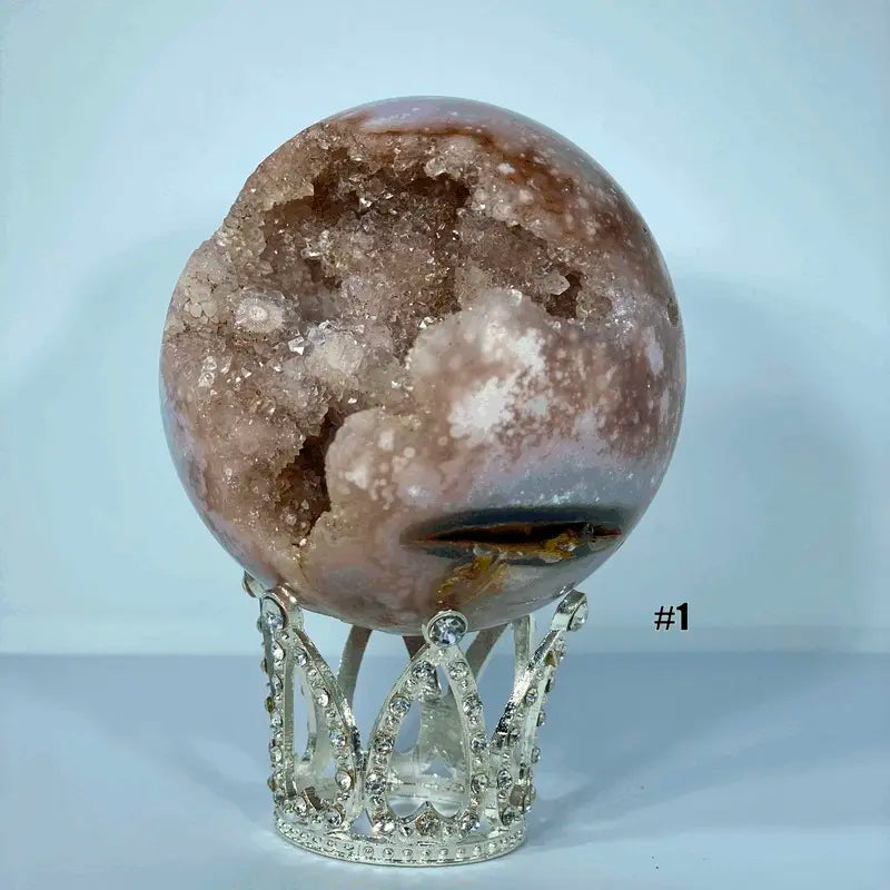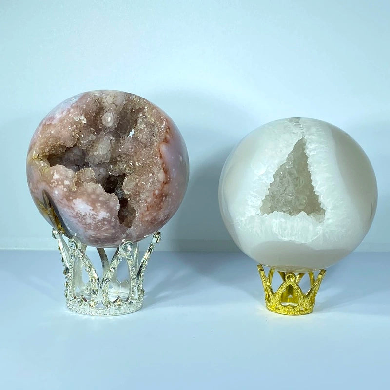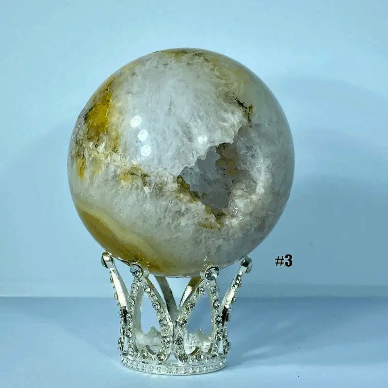 Découvrez l'univers mystique de la Sphère d'Agate. En apparence douce et polie, elle révèle en son cœur une druse scintillante, symbole d’énergie pure et de transformation intérieure.