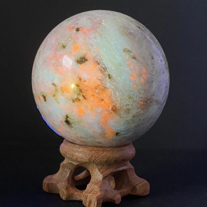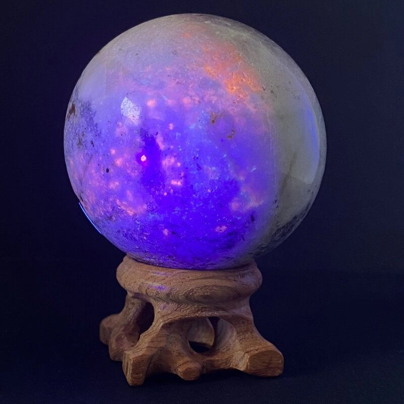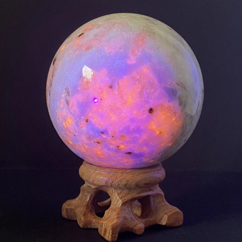 - Cristaux Purificateurs : Placez la sphère sur un amas de quartz, d’améthyste ou de sélénite pendant quelques heures pour la nettoyer énergétiquement.