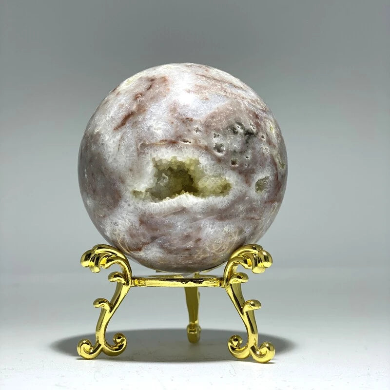 La sphère en sphalérite avec druse est non seulement un objet esthétique permettant d'apprécier la beauté de cette pierre, mais elle offre également la possibilité de profiter de ses nombreuses vertus et propriétés. En tant que pierre de guérison et gemme équilibrante, elle incarne la symbiose entre la beauté naturelle et les bienfaits pour le bien-être physique et émotionnel.