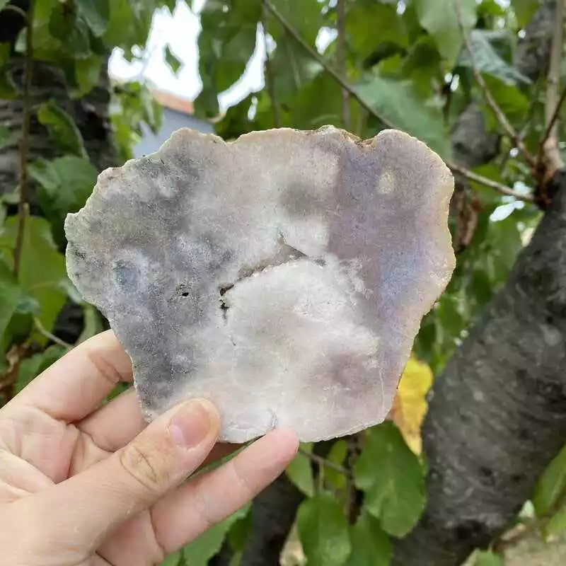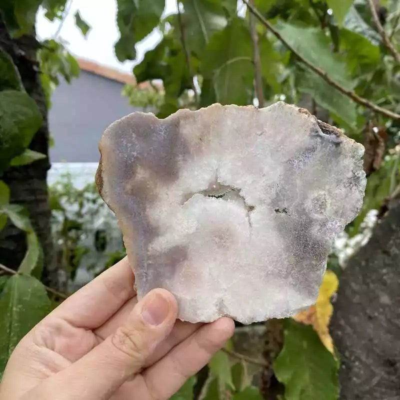 - Lumière Solaire Douce : Exposez la tranche d'améthyste rose à la lumière du soleil pendant quelques heures, en évitant les heures de forte chaleur. La lumière solaire douce recharge l'énergie de la pierre.